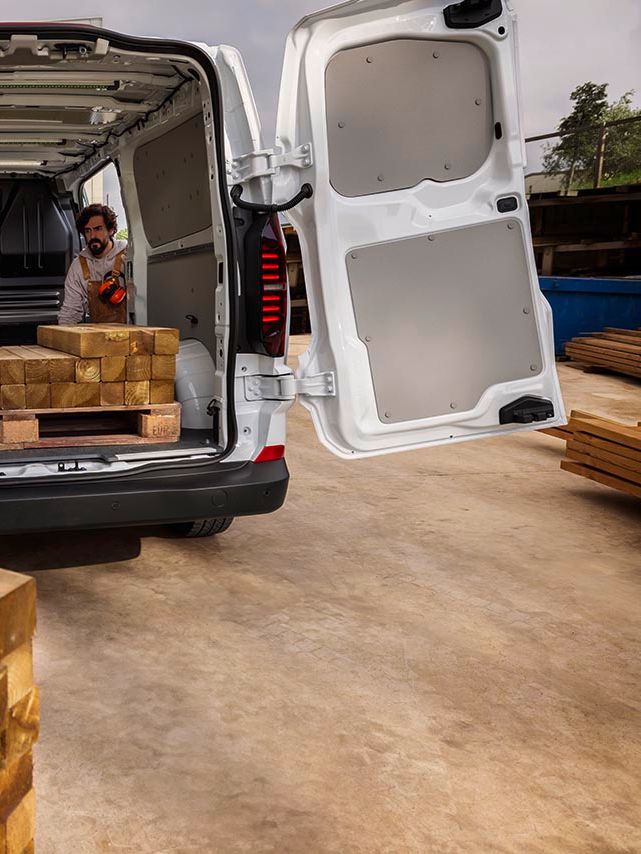 Diseñado para acompañarte en cada desafío, el nuevo Transporter cuenta con puertas exteriores que maximizan la funcionalidad sin limitar tu carga. Con una puerta lateral de 1030 x 1301 mm y puertas traseras de 1400 x 1316 mm, tienes el espacio ideal para cargar incluso pallets con total comodidad. Además, hay disponibles dos formatos de puerta trasera para adaptarse a las necesidades de tu negocio: puerta única o puertas dobles, brindando mayor practicidad en cada tarea de carga.