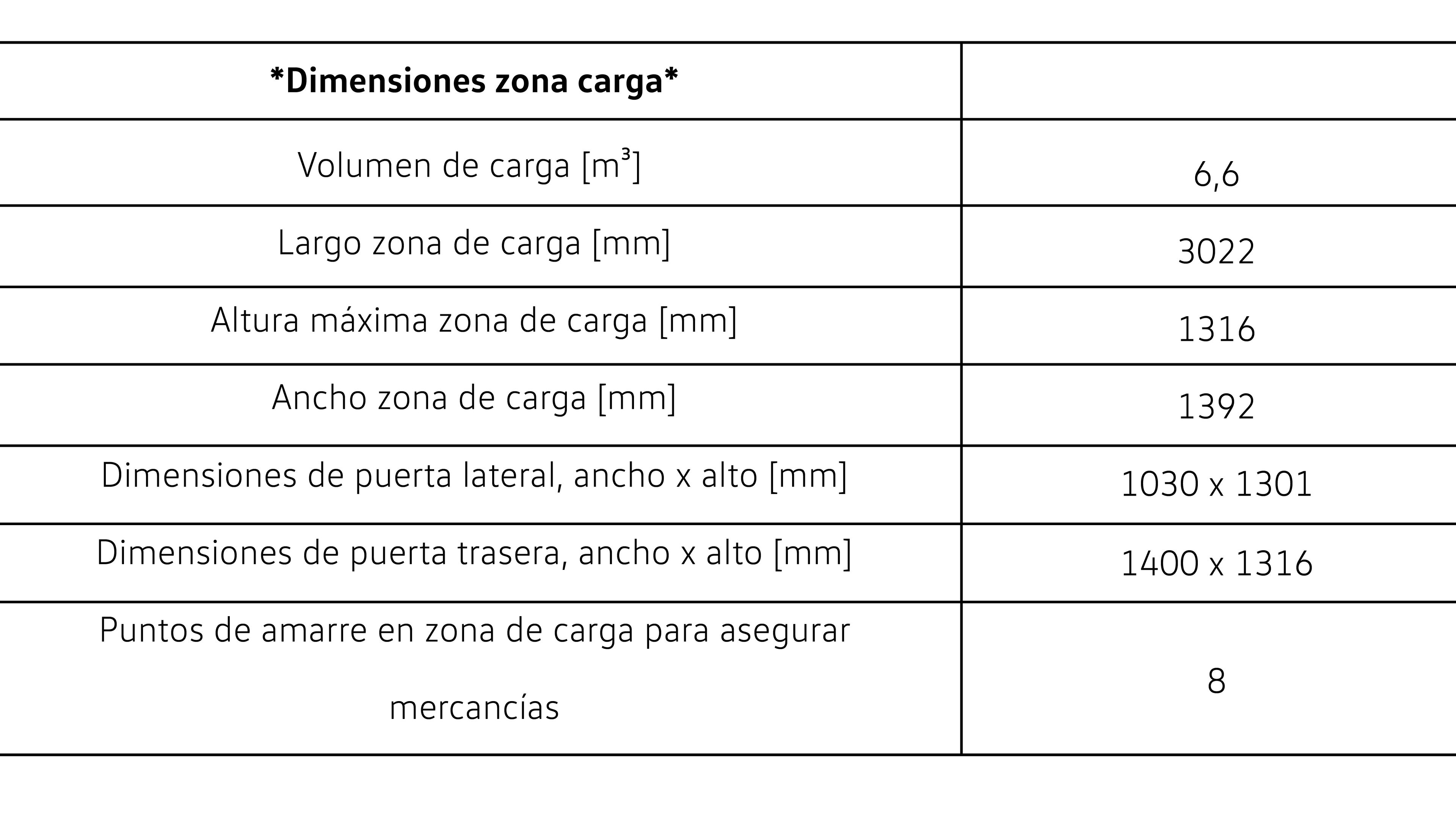 1. Volumen de zona de carga de 6,6 metros cúbicos.