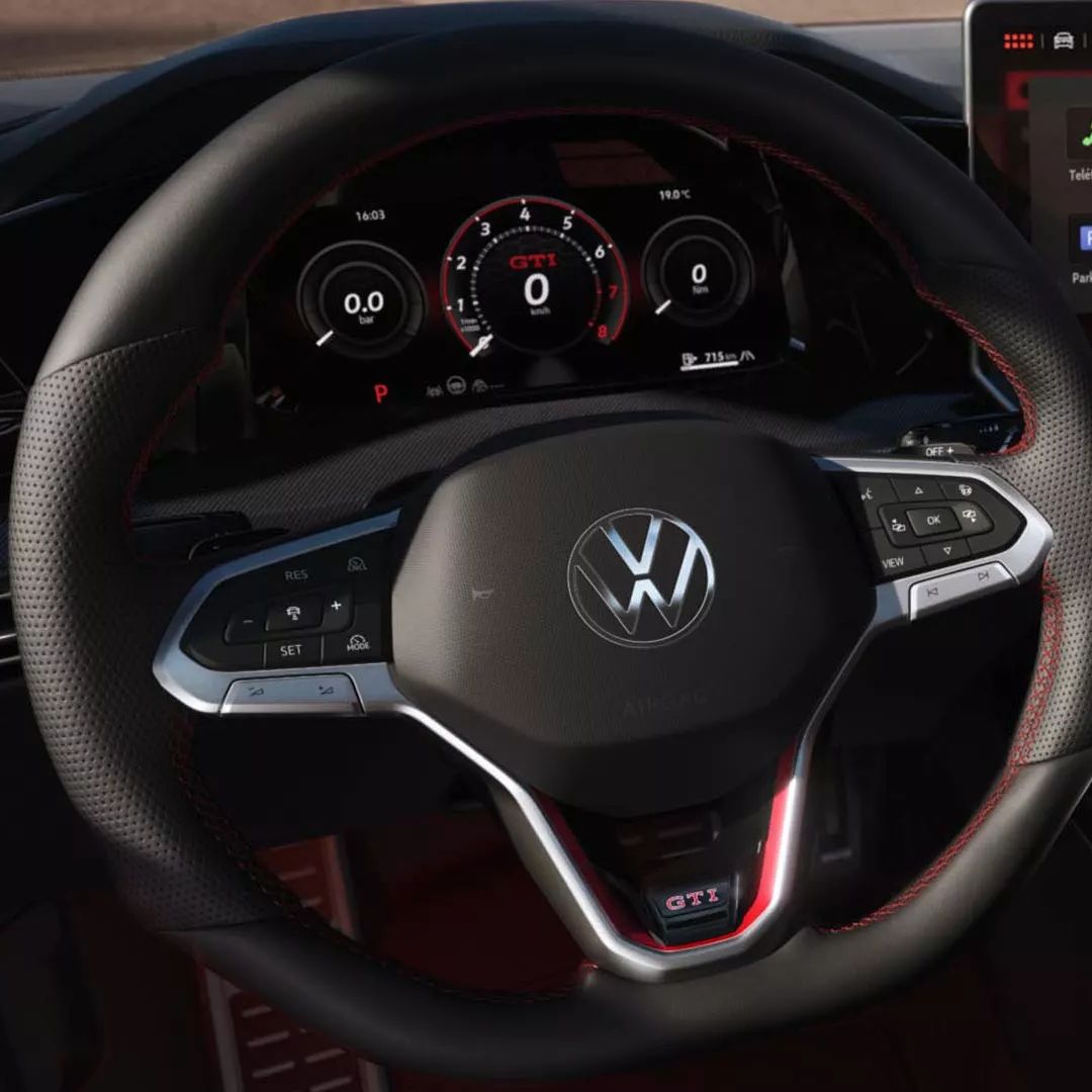 Completa la experiencia un volante deportivo multifunción forrado en cuero, calefaccionado y con levas de cambio, que te conecta directamente con la esencia GTI en cada manejo.