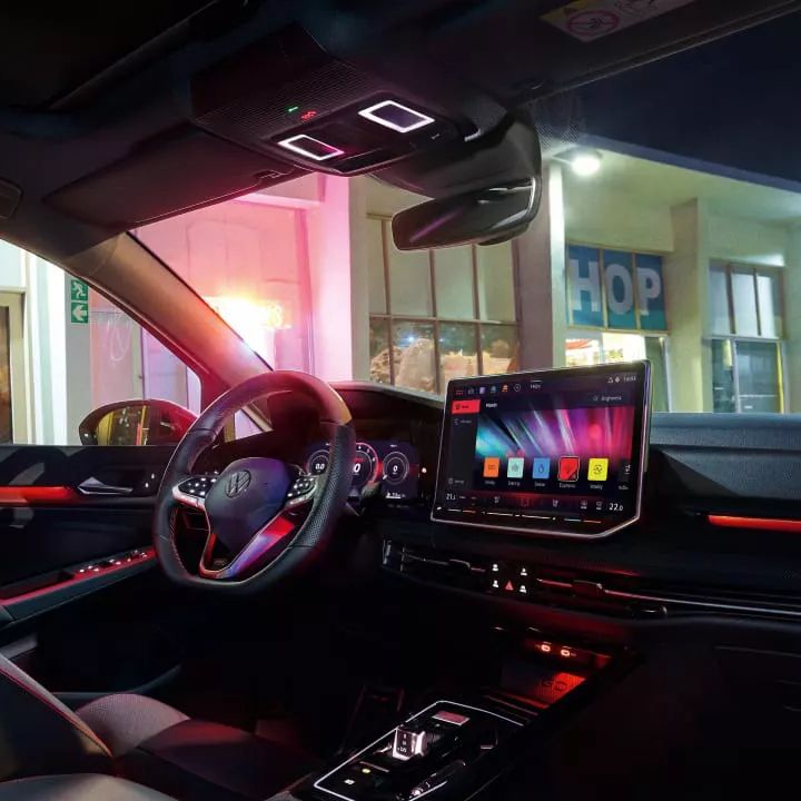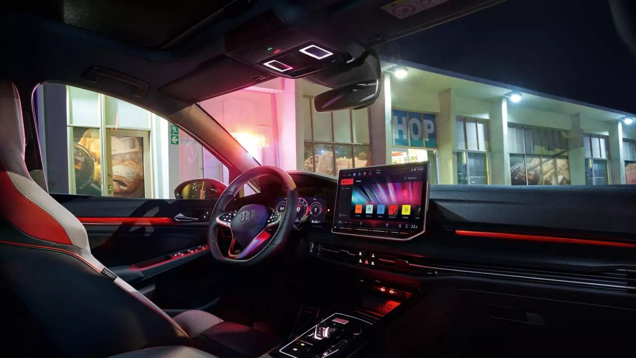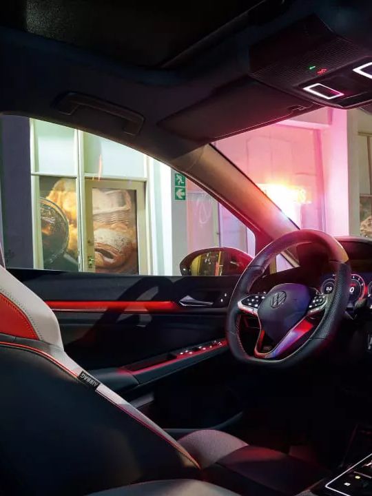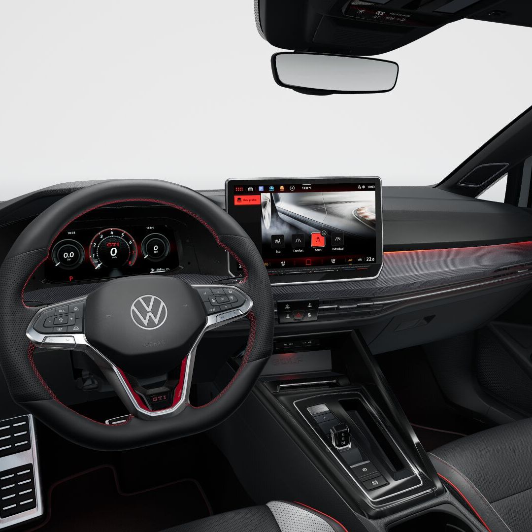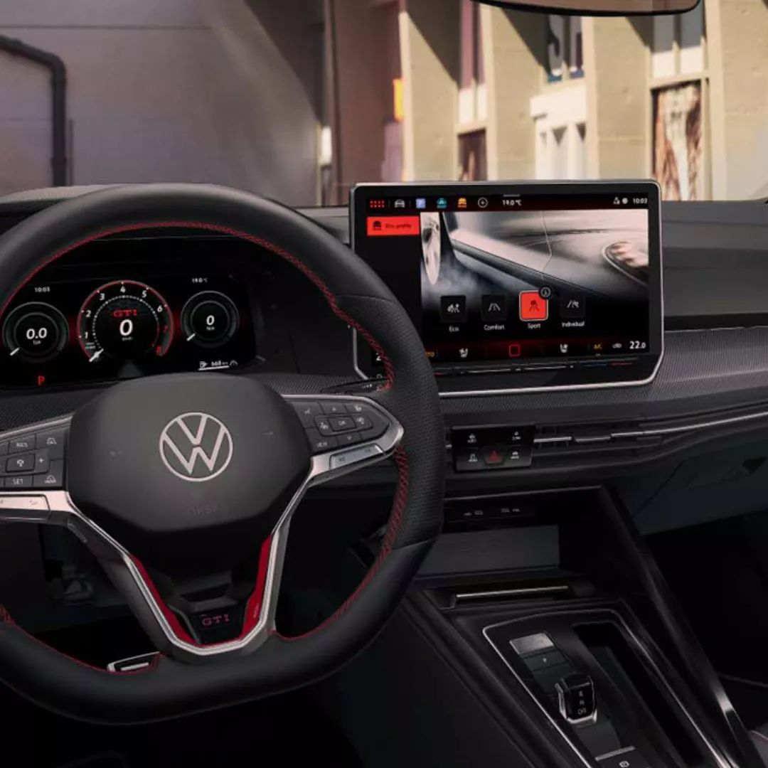 El interior del Nuevo Golf GTI combina confort, tecnología y carácter deportivo en cada detalle. Destacan sus butacas deportivas con tapiz en cuero bi-color “Vienna”, diseñadas para ofrecer sujeción y estilo en cada trayecto.