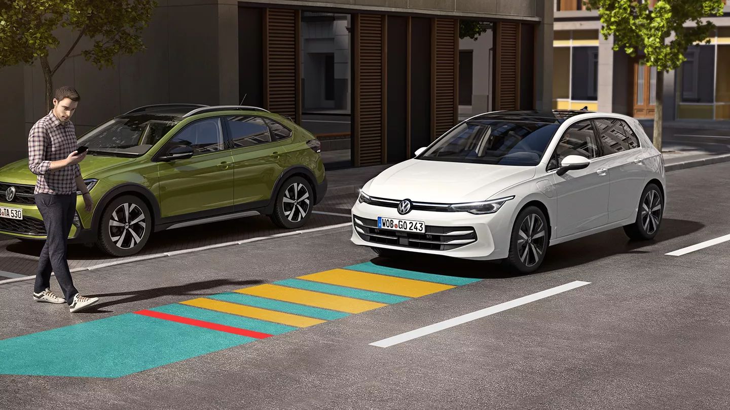 El Front Assist del Nuevo Golf GTI detecta posibles riesgos de colisión con el vehículo de adelante, alertando al conductor y, si es necesario, activando el frenado automático de emergencia. Así, contribuye a una conducción más segura, reduciendo el riesgo de accidentes en el día a día.