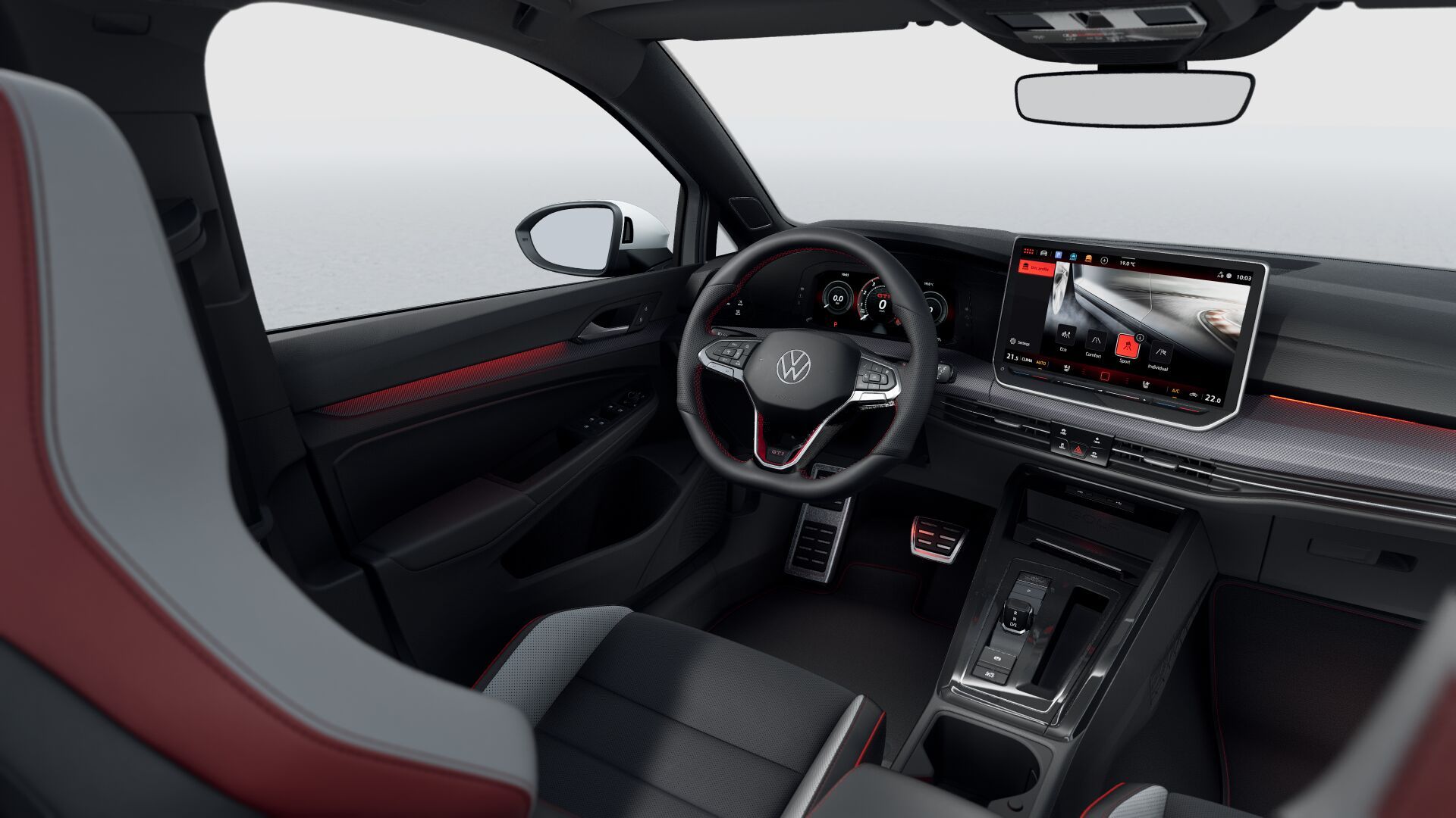 El Golf GTI incorpora asientos Top Sport Premium en cuero bi-color, con ajuste eléctrico de 8 vías para el conductor, además de soporte lumbar y función de memoria. Los asientos delanteros calefaccionados y ventilados aseguran el máximo confort en cada trayecto.