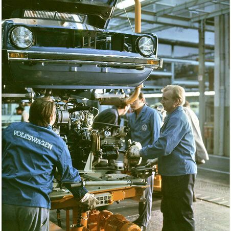 - La marca inició el uso de robots industriales y sistemas automatizados, que culminaron en 1981 con la primera línea de ensamblaje totalmente automatizada en Wolfsburg.