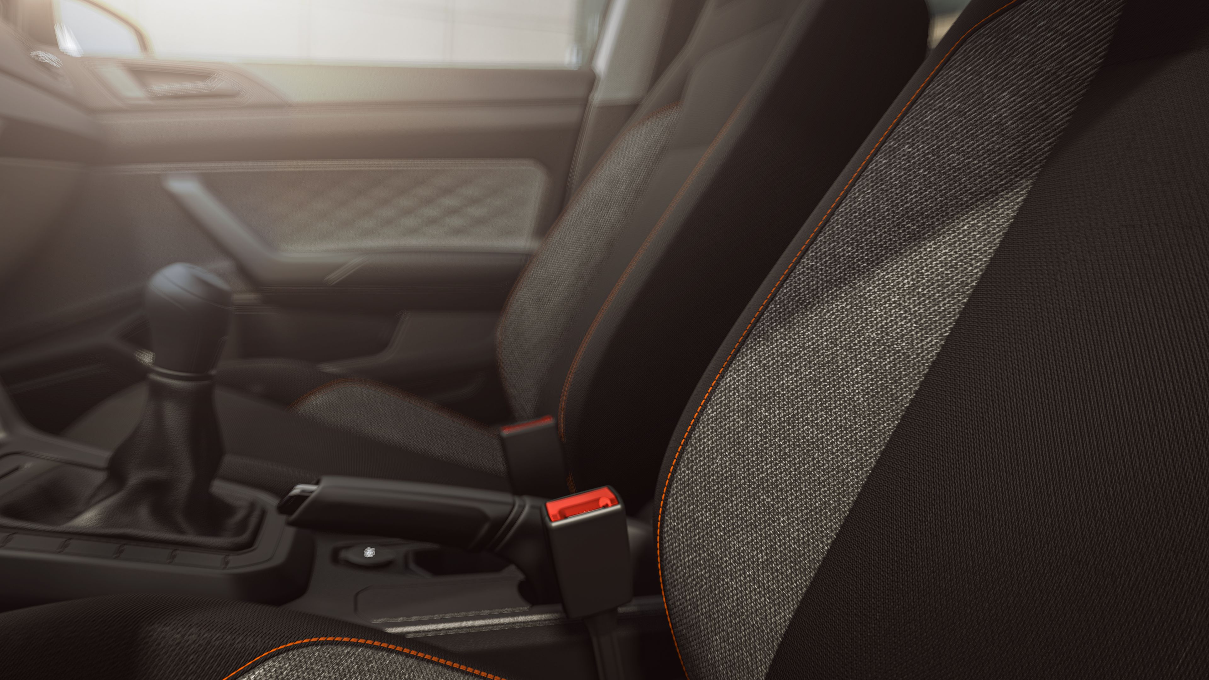 El interior del nuevo Polo Track se distingue por su tapizado en tela bicolor, que combina diseño y confort en cada detalle. Un acabado moderno que eleva la experiencia a bordo y le da un toque distintivo a cada trayecto.