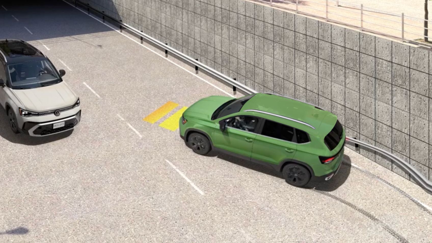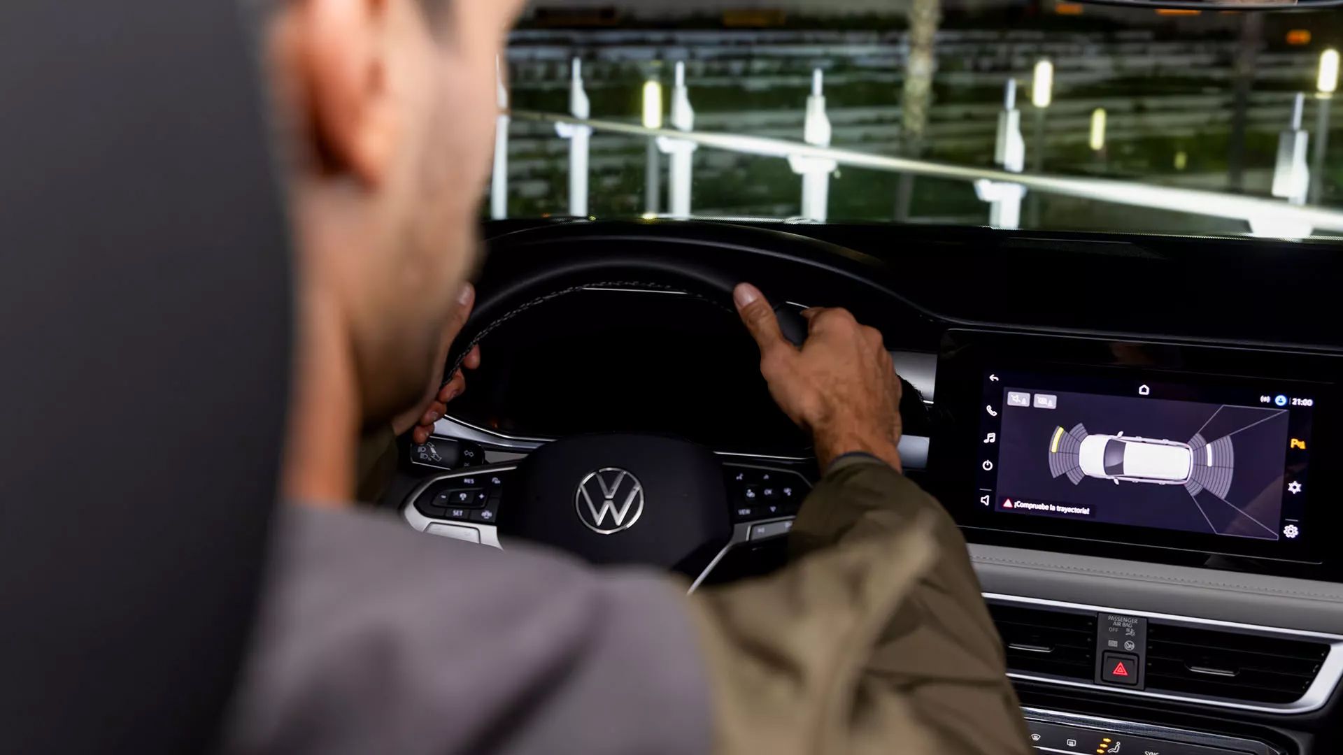 Taos te cuida incluso cuando no lo ves venir. Su Asistente de Tráfico Cruzado detecta vehículos que se aproximan lateralmente al salir de un estacionamiento y te alerta para evitar maniobras riesgosas.