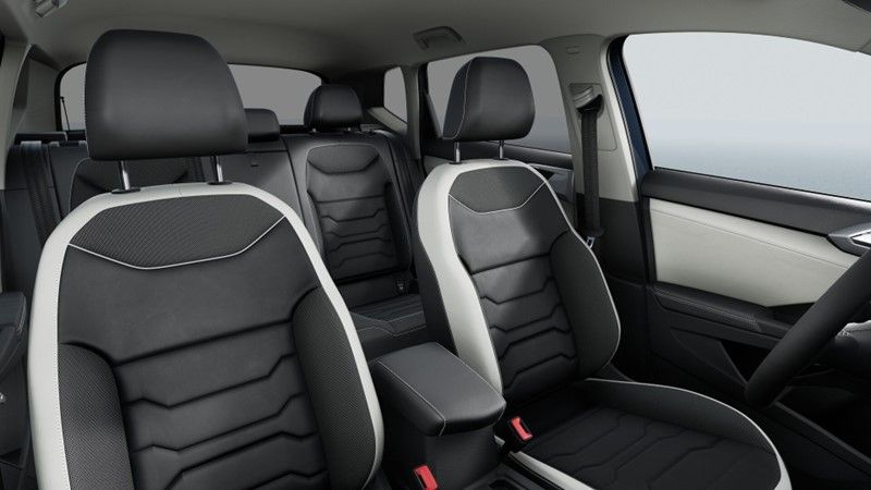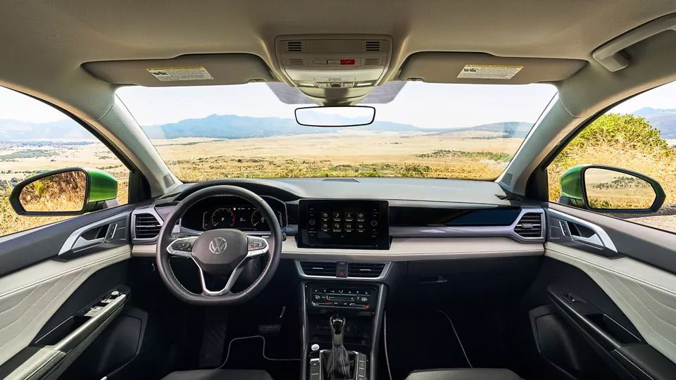 El diseño del Nuevo Taos se expresa a través de una propuesta que realza su carácter moderno y distintivo. En el interior, los asientos acompañan esta identidad con un tapiz bi-tono en negro de cuero sintético, elevando la sensación de sofisticación. El panel, también bi-tono con partes en black piano, completa una atmósfera armónica y bien definida, pensada para disfrutar cada trayecto con estilo y coherencia en cada detalle.